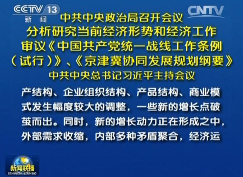 新华网北京4月30日电 中共中央政治局4月30日召开会议,分析研究当前经济形势和经济工作,审议通过《中国共产党统一战线工作条例(试行)》、《京津冀协同发展规划纲要》。中共中央总书记习近平主持会议。
