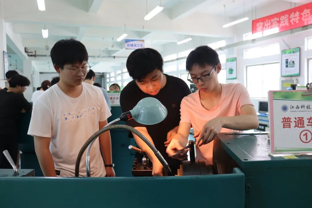 在数控机械加工中心,由杨琪老师现场实地开展职业教育活动周活动,车削综合性复杂零件,讲解安全知识、加工工艺、切削三要素,正确使用工量具,示范操作,使每个学生都能上手操作并且独立完成一个合格零件。