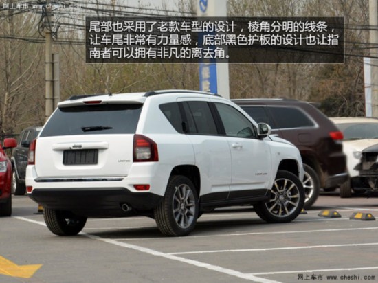 2015款指南者在外形设计上基本沿用了老款车型的设计,依旧保持着低调朴素的设计风格。有力的七孔式进气格栅,采用了醒目的镀铬装饰条点缀,不仅传承了纯正的JEEP家族,也让车头看上去更加迷人。