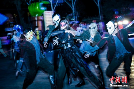 10月17日晚,武汉欢乐谷第四届万圣欢乐节“惊”彩开幕,两万游客尝鲜惊悚首夜。开幕式上,武汉欢乐谷举办了一场独具匠心的3D鬼影秀,利用电能在恺撒宫墙体逐渐呈现搞怪鬼影,点亮万圣欢乐节拉开狂欢序幕。据悉,本届万圣欢乐节将从10月17日持续到11月15日,欢乐谷及玛雅海滩两大公园捣鬼狂欢,7大鬼秀惊魂,8大鬼屋惊悚,9大魔域惊心、300妖魔鬼怪夜行,全新打造江城武汉最嗨的万圣狂欢。张畅 摄