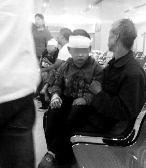 受伤小学生在医院接受治疗。