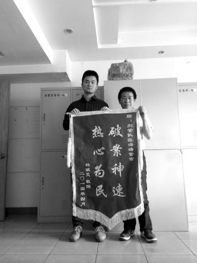 昨天上午,事主杨先生将写有“破案神速热心为民”的锦旗送到西城分局刑侦支队以示感谢。同时,警方返还他的被盗车及随车丢失的9700元。