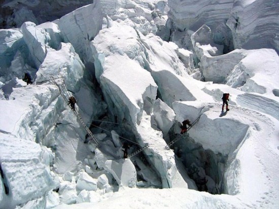美男子挑战喜马拉雅坠入冰缝顽强求生