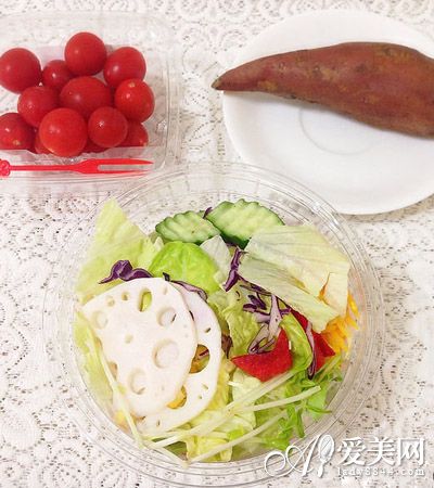 晚餐:烤地瓜半个+无油蔬菜汤