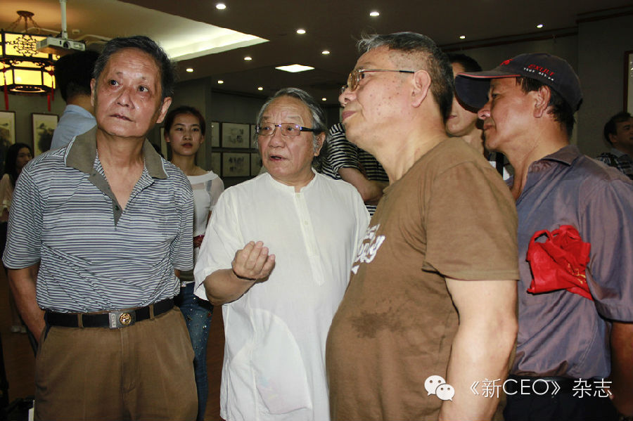 夫耕先生(左二)在展览现场亲自为观展嘉宾作讲解。