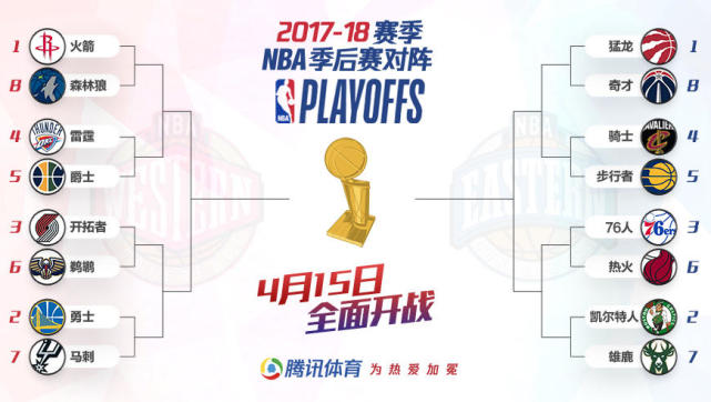 季后赛首轮对阵:火箭战森林狼 勇士对决马刺