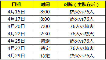 这仅仅是两支球队历史上第二次在季后赛相遇,2011年,76人曾在首轮遭遇拥有三巨头的热火,结果毫无悬念地以1-4败下阵来。本赛季常规赛,两队四次交手,2-2打成平局。