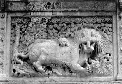 还有一些“萌狮子”不爱梳头。大多数情况下,石狮子都是梳着整齐的“卷花头”,这个卷称为“螺髻”,代表着身份等级。比如,一品官员府可以摆“十三太保”,就是石狮头上有十三个卷。之后,每低一级,狮子头上的卷就要减少一个。您不用担心会出现秃头狮子,因为七品以下官员的门前就不能再摆狮子了。而碧云寺石牌坊坊心有一只“披头散发”的母狮,狮子前爪有一只小狮子,正仰头与母狮子玩耍。另一只淘气的小狮子干脆悄悄爬上母狮子的背,探出一个小脸儿,同样是披散着头发。