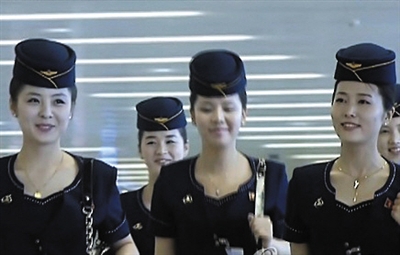 朝鲜公布的一段机场视频中的朝鲜空姐。