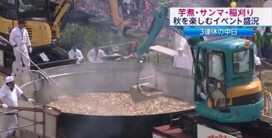 日本举办年度煮芋头大会,铁锅直径6米挖土机当锅铲。