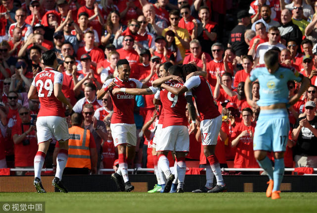 英超-阿森纳5-0伯恩利 温格主场告别战奥巴梅扬独造3球