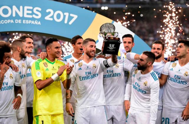 腾讯体育8月17日讯今日凌晨,西班牙超级杯次回合中,皇马主场2-0击败巴萨,两回合总比分5-1双杀巴萨夺冠。阿森西奥世界波破门,两回合均进球,本泽马建功定胜局,C罗停赛,梅西与苏亚雷斯射中门柱。