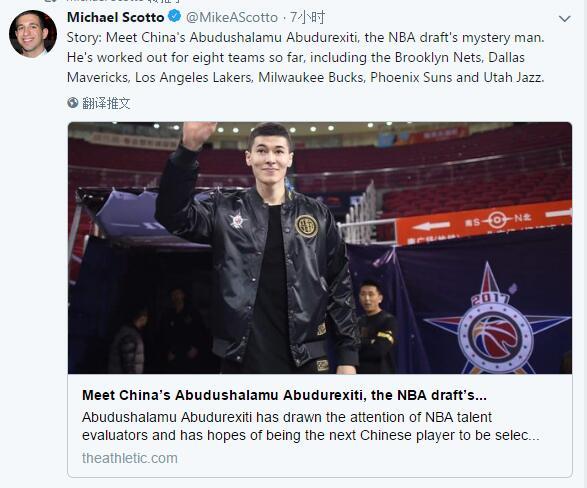 早在今年4月份时,NBA记者迈克尔-斯科特便爆料称,阿不都沙拉木将参加2018年NBA选秀,并且已经签约经纪人,准备冲击NBA,不过随后,阿不都沙拉木也对这一消息进行了辟谣,他表示,自己只是年龄到了,自动参选。