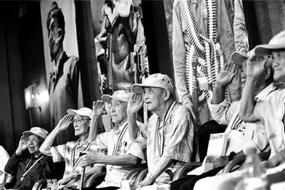 抗战老兵在现场集体敬礼 摄影/本报记者 魏彤