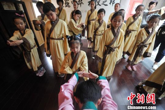 小学生身着汉服学礼仪 国学讲堂山西受热捧(图)