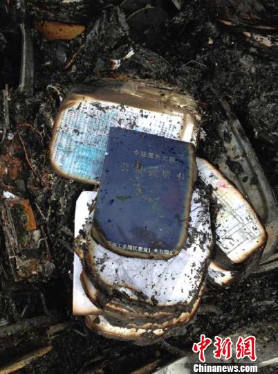据现场救援的消防官兵描述,这辆着火的小轿车挂着苏E牌照。火被扑灭后,发现车内残留大量文件,多数是关于房地产的图纸。一份有着蓝色封面的说明书上的文字依稀可辨为,“苏州工业园区惠龙置业有限公司”等字样。