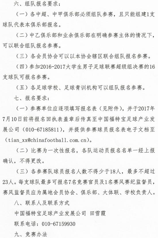 (一)各中超、中甲俱乐部必须组队参赛,且只能组建一支球队代表本俱乐部报名。