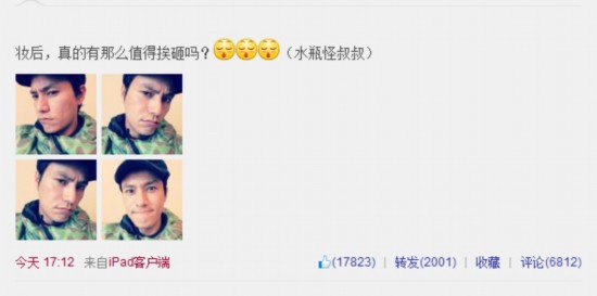 陈坤各“神”自拍“挨砸” 成龙等明星私生子话题不断