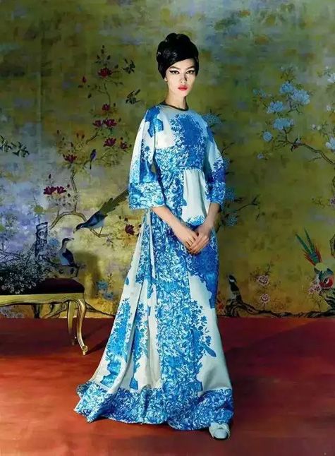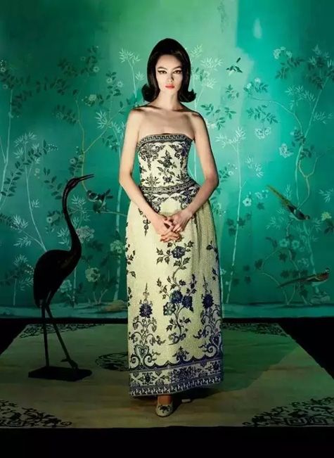 早在1984,Chanel 就以青花元素为设计灵感,设计了一条春夏青花瓷礼服。