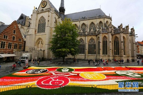 9月5日,游客在比利时鲁汶观赏鲜花地毯。当天,这块由约12万朵秋海棠构成的鲜花地毯在比利时首都布鲁塞尔以东约25公里的著名大学城鲁汶市中心亮相。比利时是鲜花种植大国,仅秋海棠的年产量就达6000万株。为充分利用这一美丽的资源,该国每年都会在不同地点举办多次以鲜花为主角的活动,其中以每逢双数年举办的布鲁塞尔大广场鲜花地毯最为著名。(新华社记者龚兵摄)